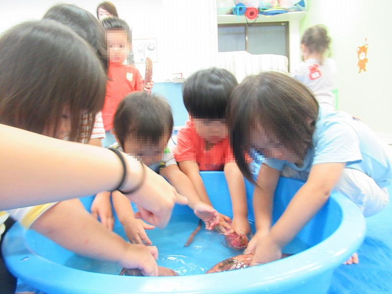 お次は持帰ったお芋をきれいに洗います。「じゃぶじゃぶ、しゃかしゃか♪」