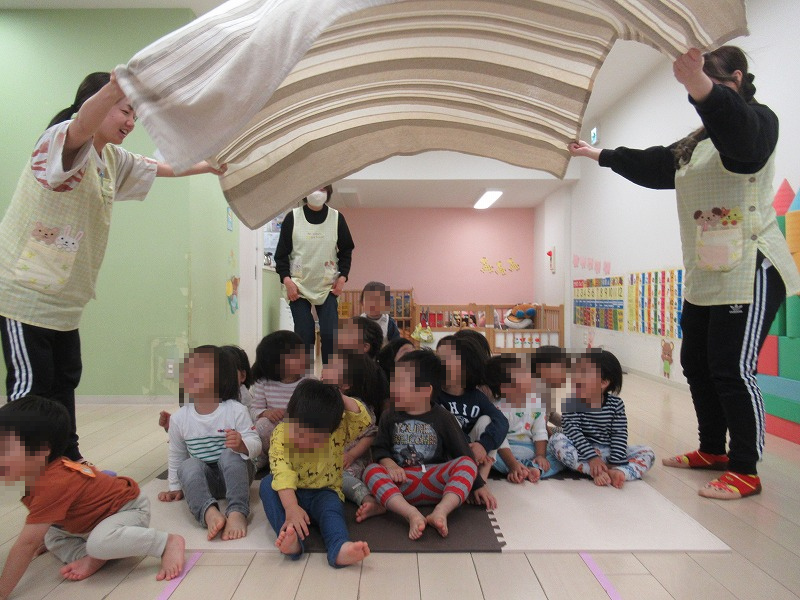 大布の下に発生する渦巻き状の風が気持ちいいみたいで、子天使ちゃんたち大布遊びが始まると一斉に大布の下に集まってくるんですよー(笑)