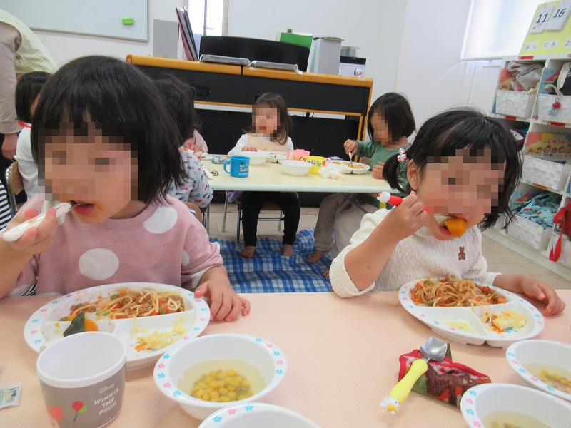 この日の給食のおかずの一品には、もちろんかぼちゃが、自分たちで種を取ったかぼちゃはやっぱり美味しいね(^o^)/