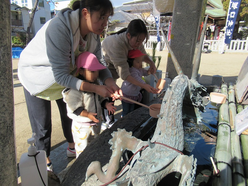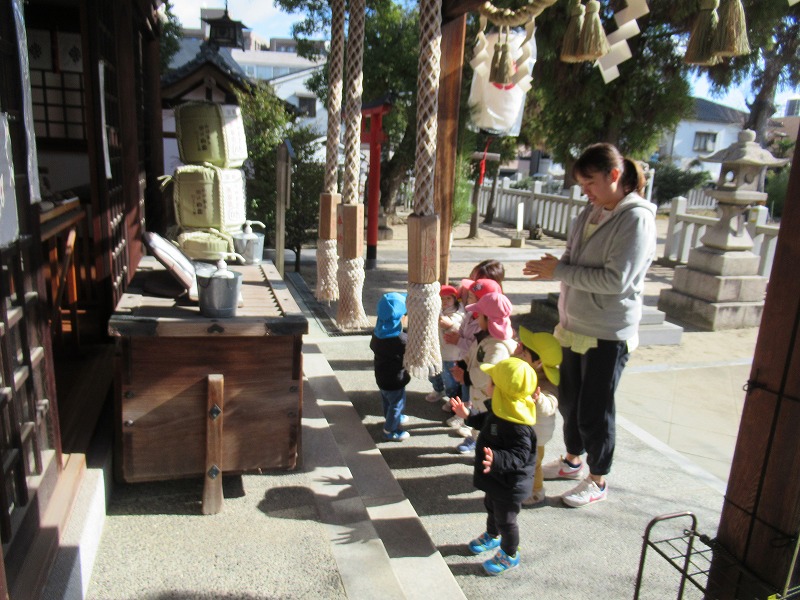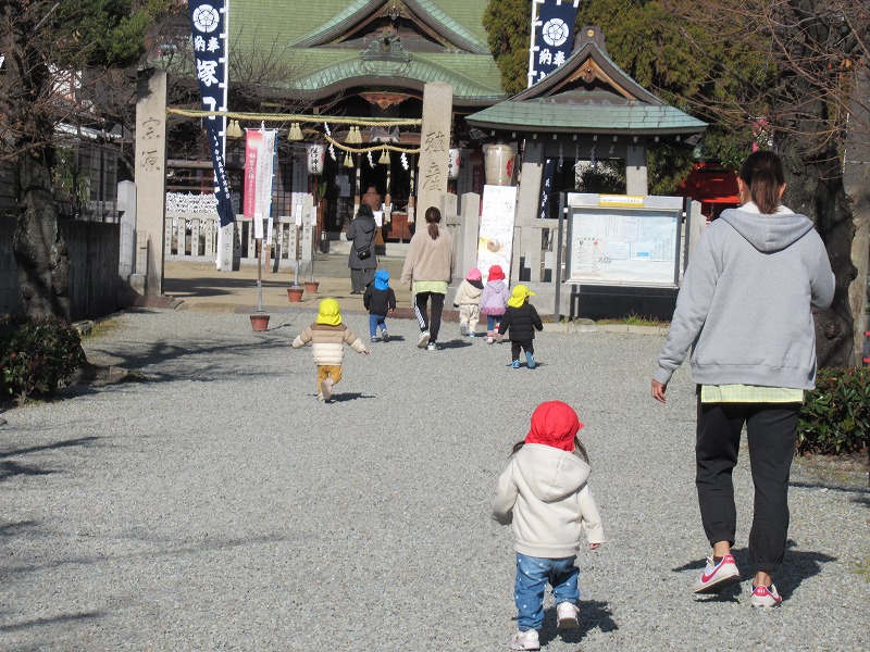 4日は今年最初の登園日。氏神様(土地の神様)の塚口神社に初詣(^-^)