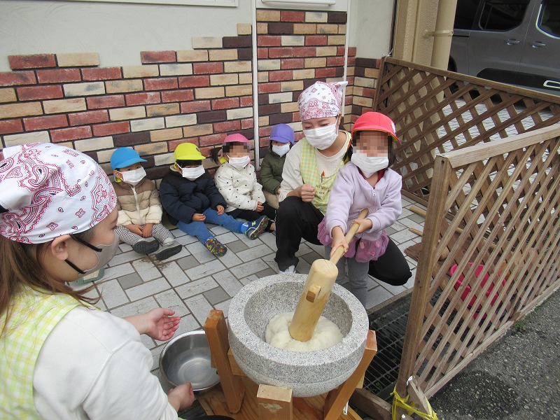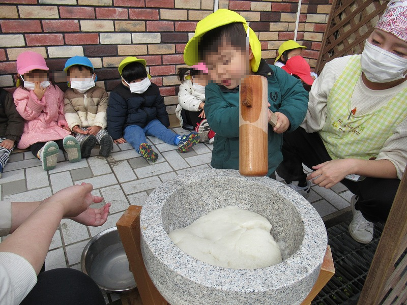 この日は朝からお餅つき(^-^)前日にはみんなで、もち米洗いシャカシャカ♪
