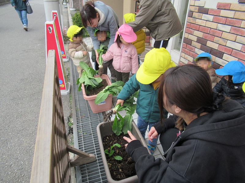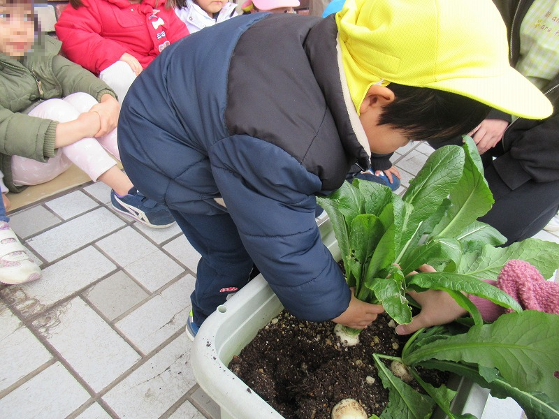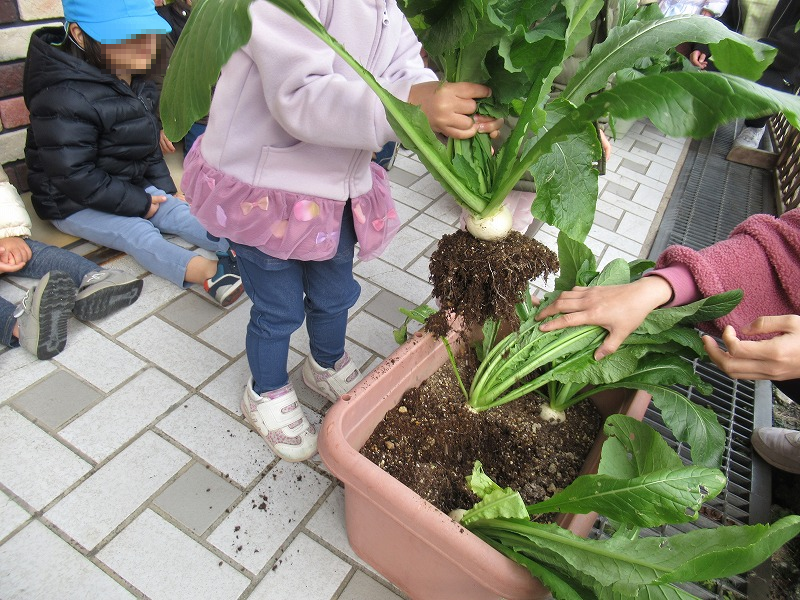 ヨッコラセ〜ドッコイショ〜♪力を込めてカブを引っこ抜きます。