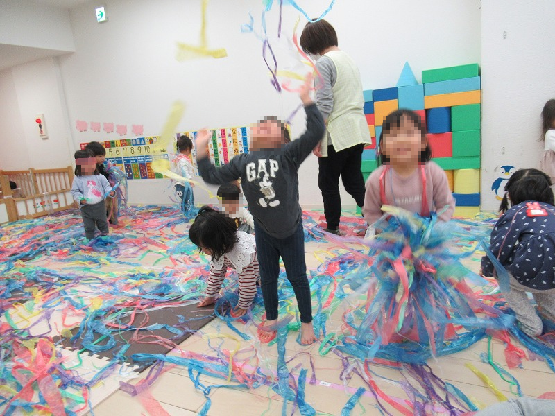 上の写真は設定保育「ちらかし遊び」、左下はダンスPの「体幹トレーニング」、右下は保育発表会の「大道具作り」。もうすぐ保育発表会、子ども達は練習や準備も楽しんでいるみたい(^-^)さっすがーウェリナの園児たち。来週もたくさん楽しもうねー!