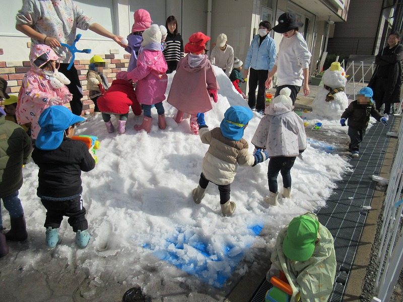 今年もウェリナ名物イベント雪遊びの時期がやってきました。前の晩からウェリナ男性職員全員で(2人しかいませんが汗)兵庫県美方郡まで2t冷凍車で雪を取りに行ってきました(^-^)