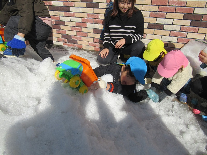 「うわ〜!」「つめたーい!」「○×△※□〜!」言葉にならない叫びをあげて雪を満喫する子ども達(^-^)/楽しそう!