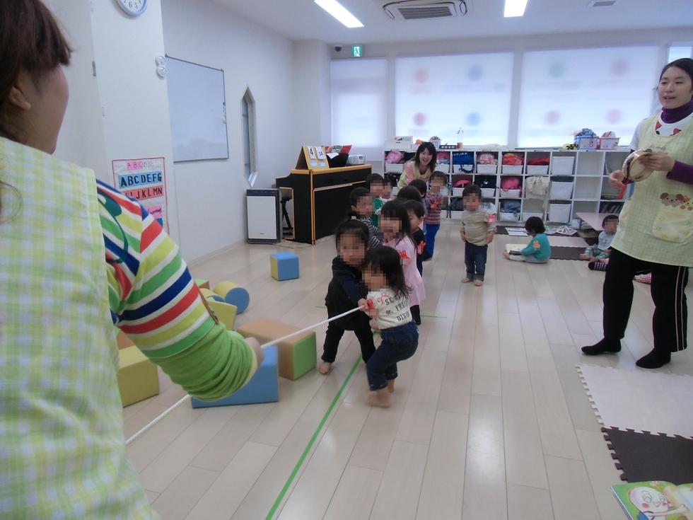 右下写真は「Si先生 VS 子天使ちゃん達」の綱引きです。「おーえす!おーえす!」どっちもがんばれぇ〜(^0^)。