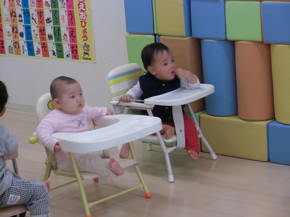 左下写真は英会話のレッスンを聞いている0才児子天使ちゃん2人。今後が楽しみな2人です(^-^)。
