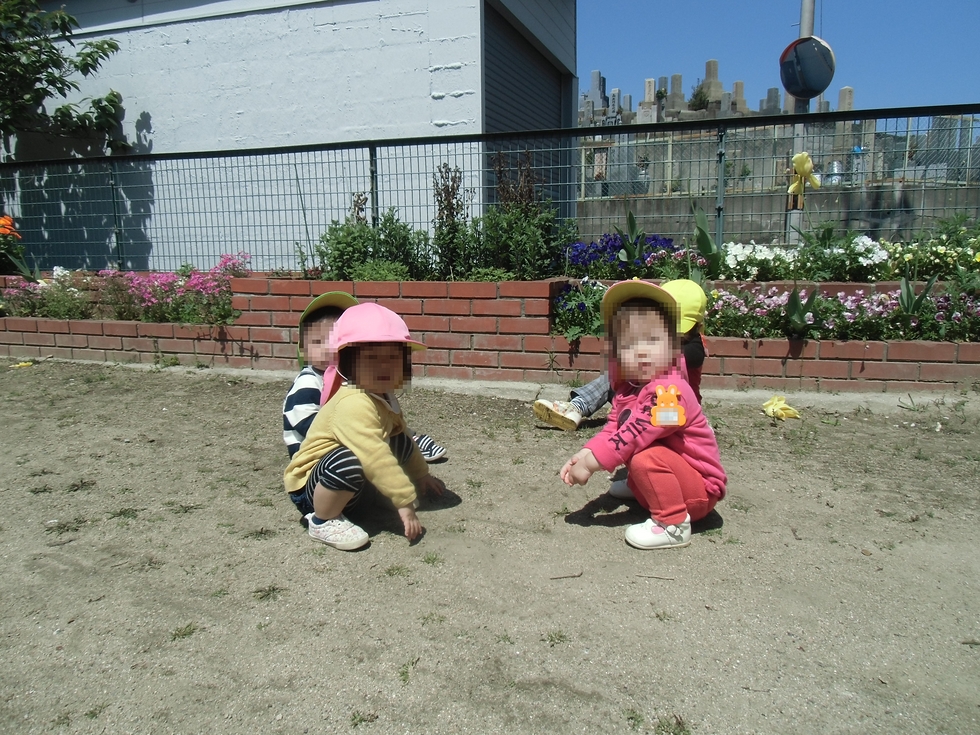 写真は公園での1才児3人組・・・なにやら良からぬ相談をしていたみたい(笑)。写真を撮ろうとしたら気づかれちゃいました(^-^)。