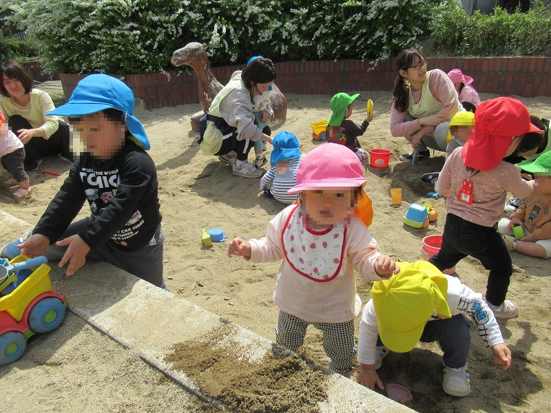 公園ではみんなご機嫌さんで遊んでいました。2日目でこの状態って・・今年の新入園児さんたちも、ちょっとすごいかも(^-^)/