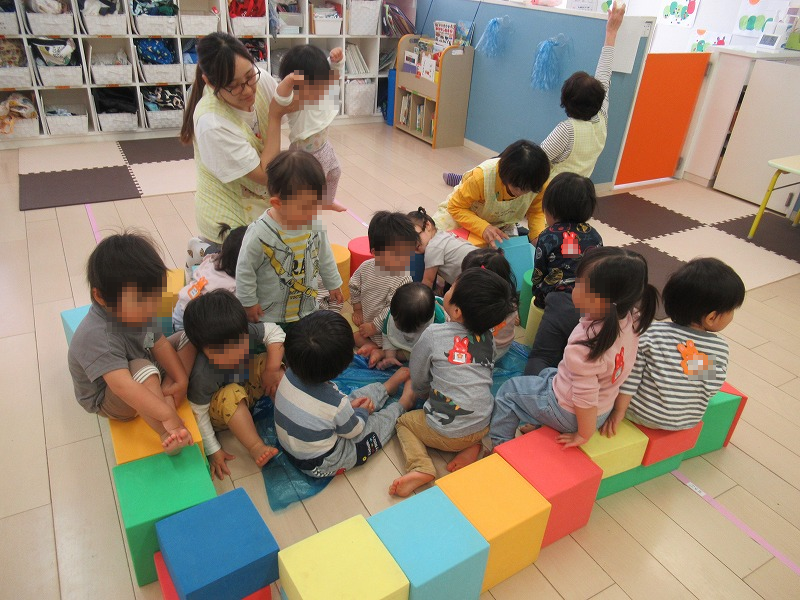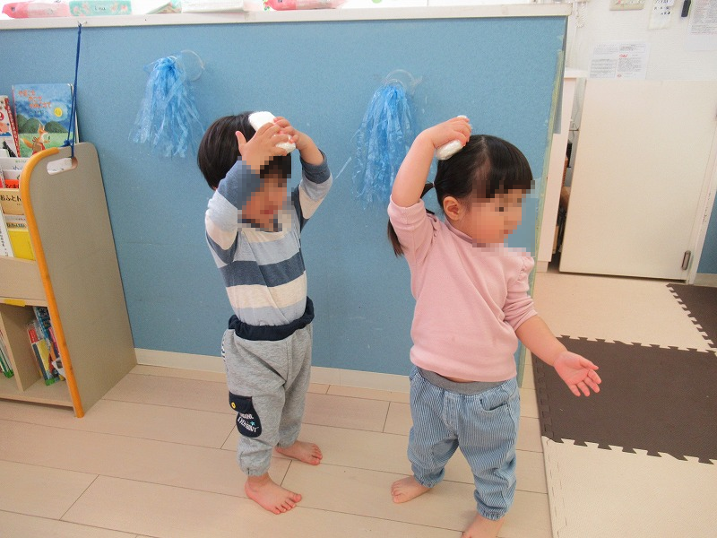 この日の数字遊びは「お風呂ごっこ」。シャワーで身体を流したら、湯船につかって「1.2.3.4.・・」。みんなポカポカに温まりましたか〜(^o^)