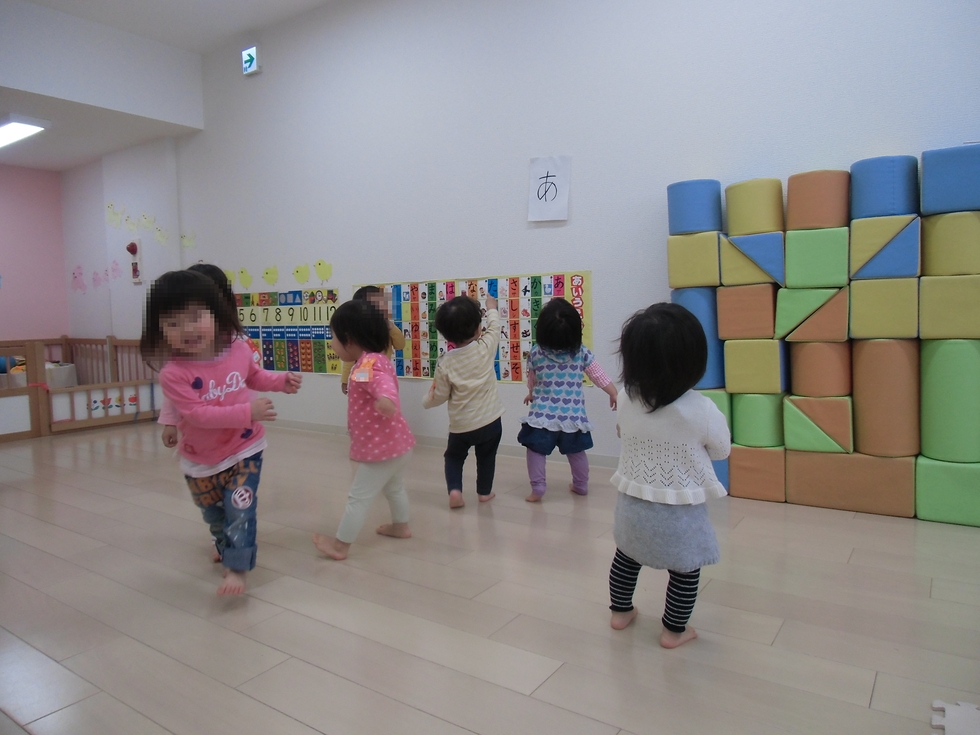 ひらがな文字を園内あちらこちらに貼り付けました。