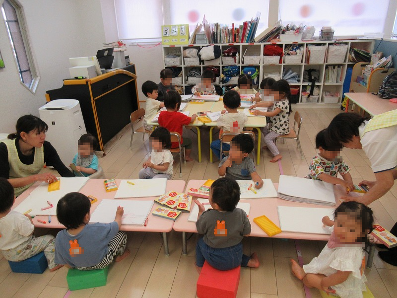 おやつの後の午後の設定保育は「動物園の思いでお絵描き」、みんな楽しかったね!よく頑張れました(^o^)/