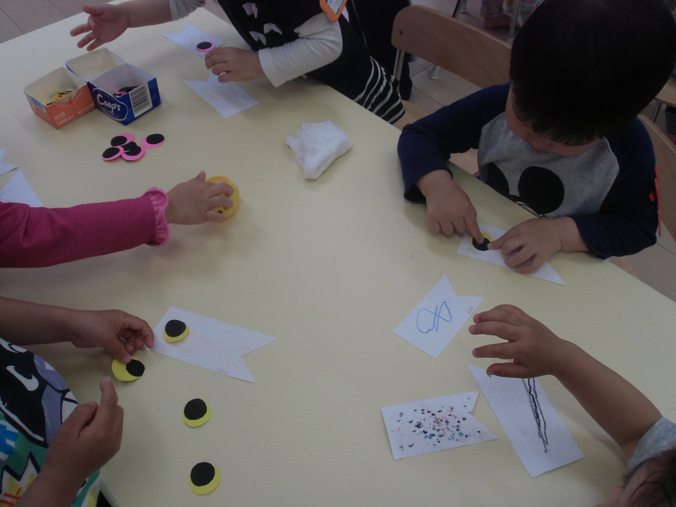 点々をいっぱいつけたり、色を塗ったり、丸を描いたり(^-^)