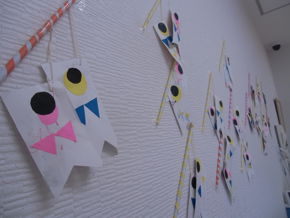 出来上がった「こいのぼり」をエントランス壁に展示しました。(写真)