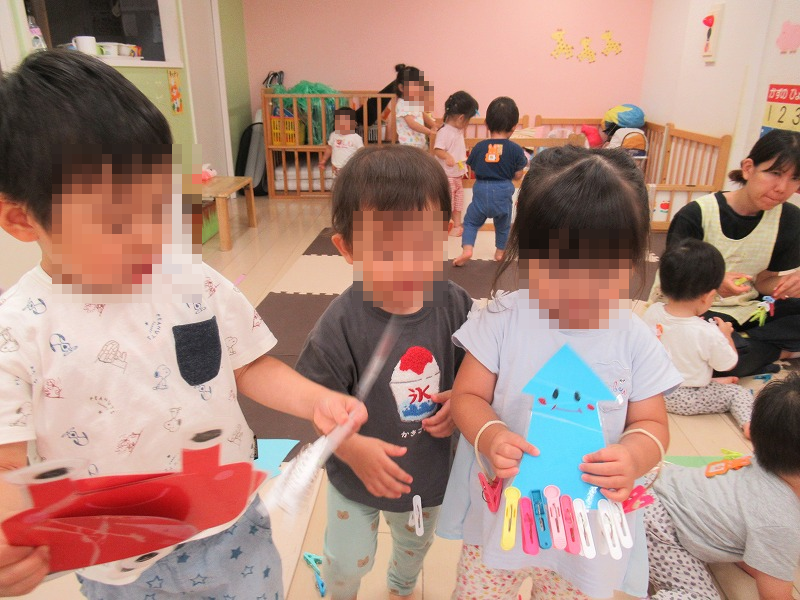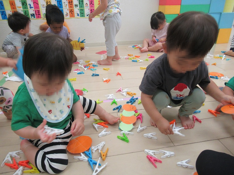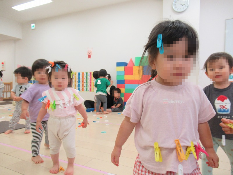 子ども達にブームな洗濯ばさみ遊び!ブロックよりも粘土よりも洗濯ばさみがいいみたい、指先を動かすのが楽しいっていいことだよね(^-^)