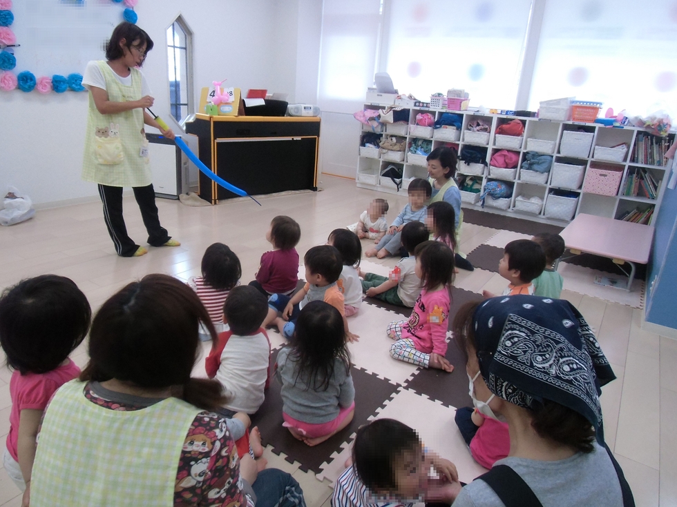 1番手は元気いっぱいSi先生のマジックペープサート。(左下写真)