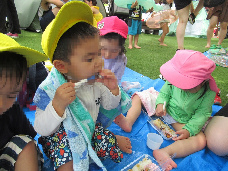 たくさん遊んだら、恒例のお弁当タイムー♪食べる食べる!給食師さんが6時に出勤して作ってくれたかいがありました(^-^)