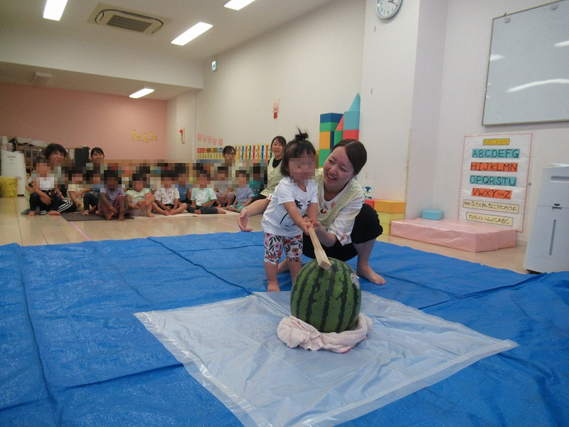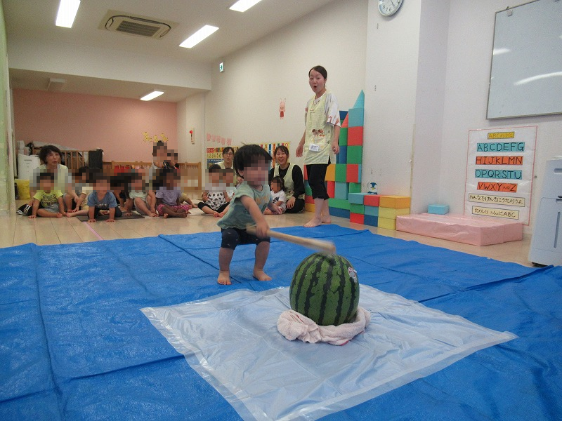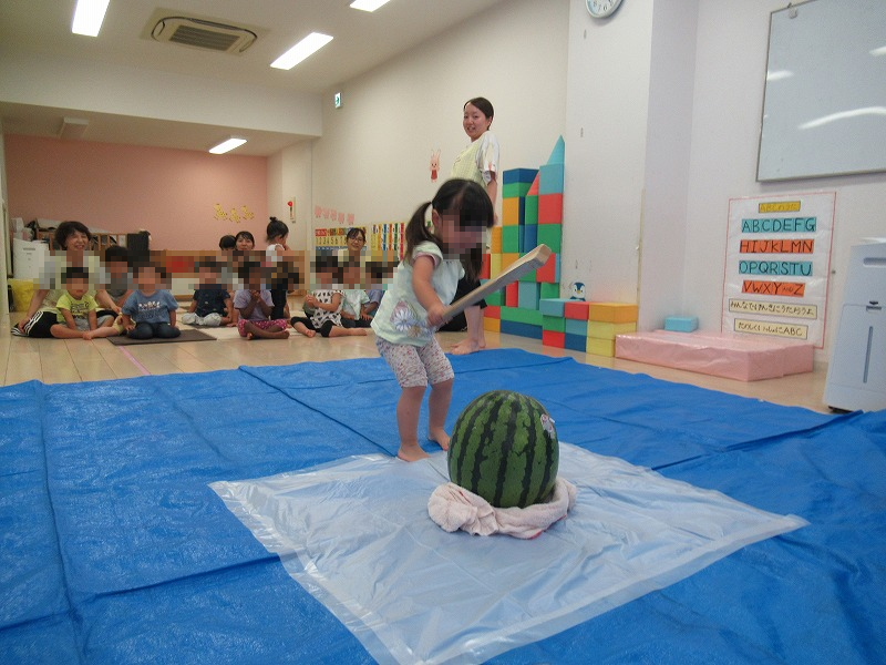 一人づつ順番にスイカ割りに挑戦です(^-^)