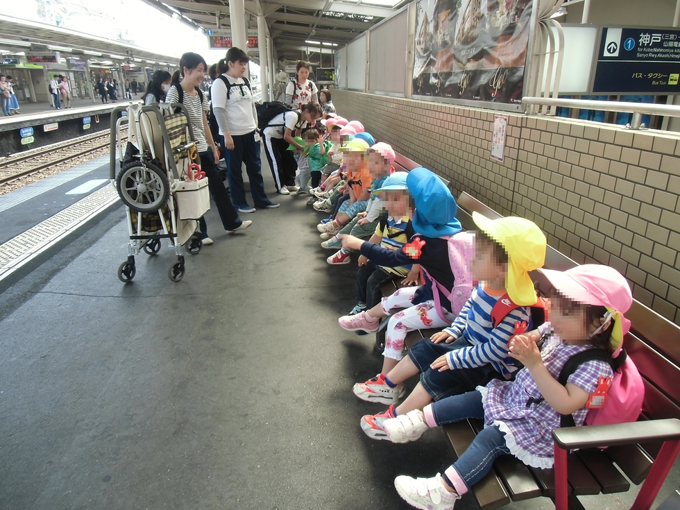 みんなお行儀良くチョコンと座って電車を待ちます(^-^)。(左下写真)