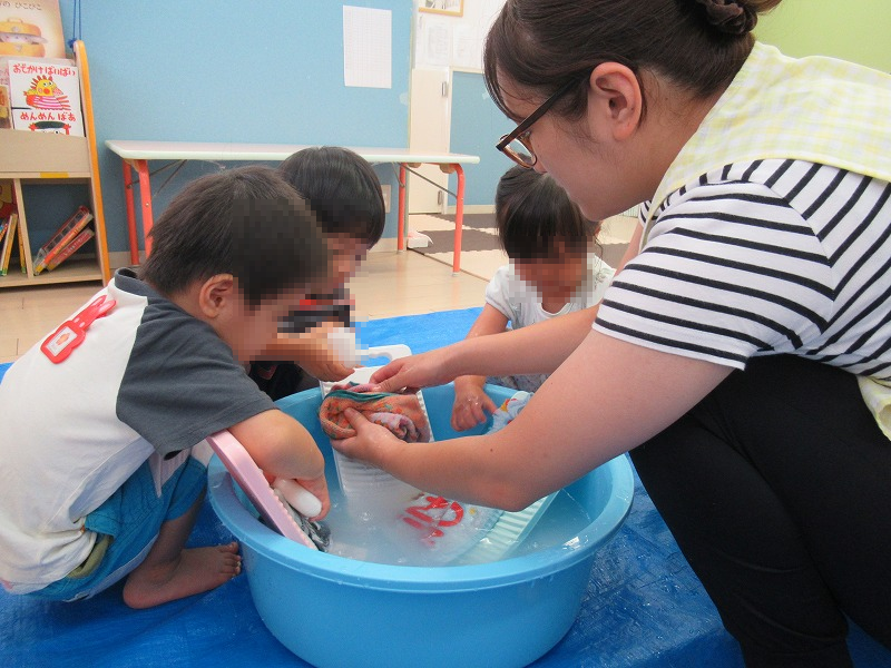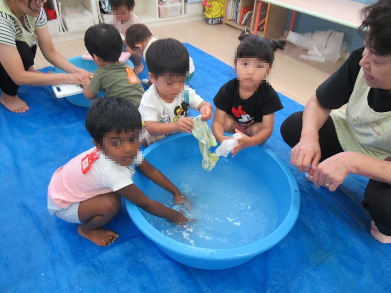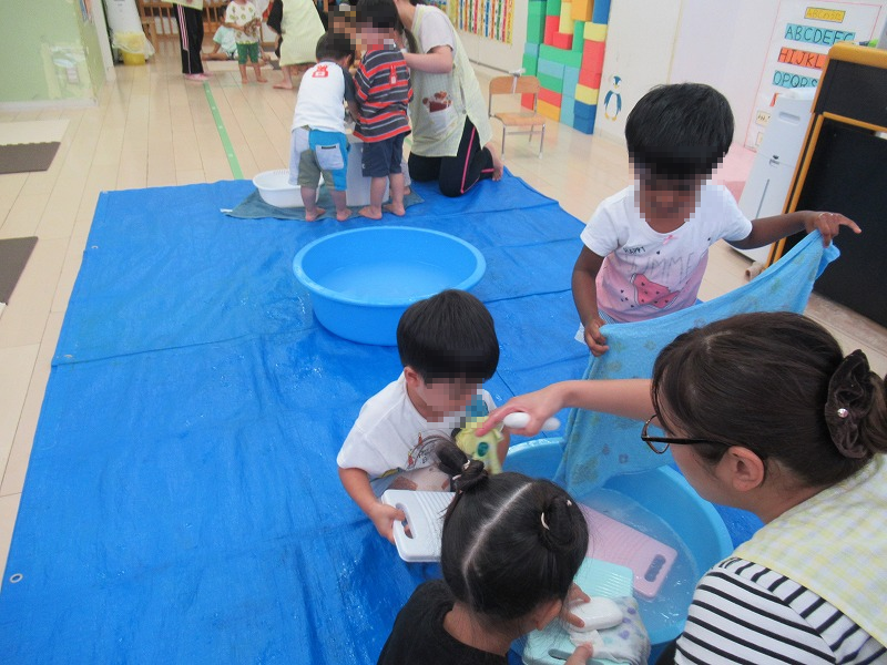 夏の設定保育の最後は「洗濯ごっこ」