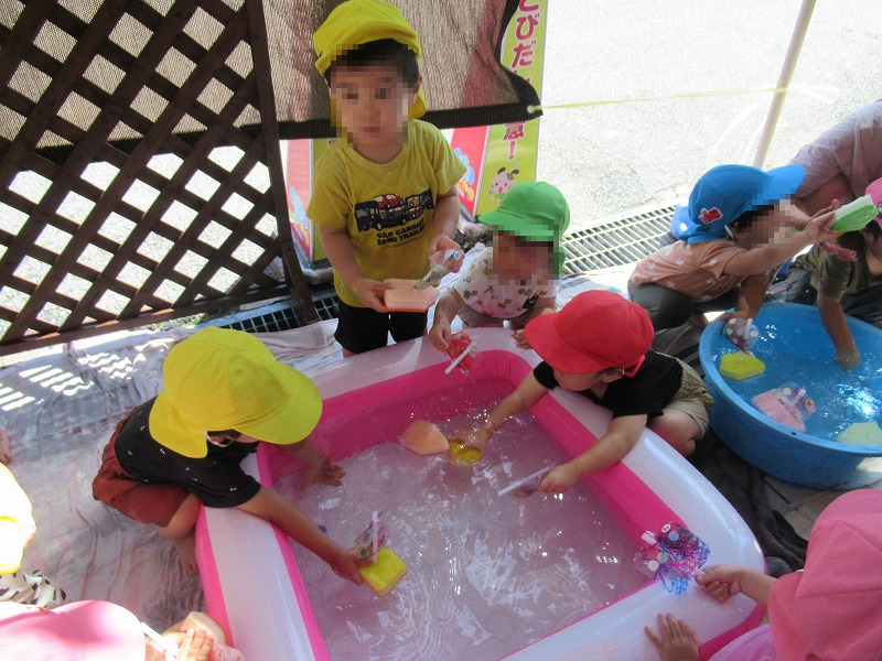 ちゃんとお水に浮かびましたよ〜自分たちで作ったオモチャで遊ぶのって楽しいよね(^-^)/