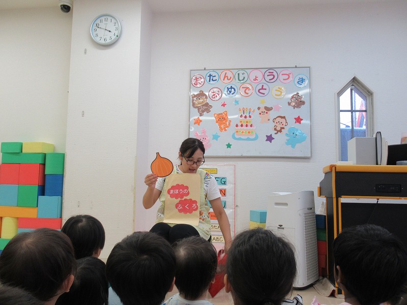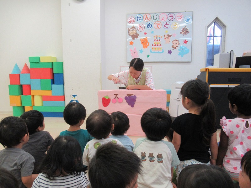 恒例の先生達の出し物が終わったらバースデーカードを受け取って、みんなでお歌のプレゼント♪