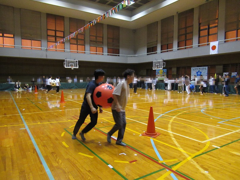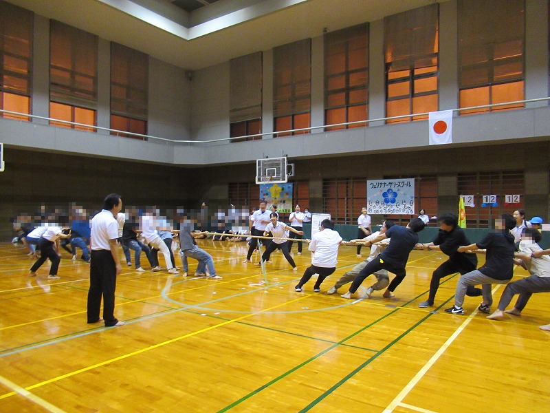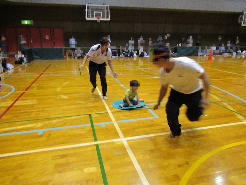休憩をはさんで後半戦は親子競技「親子かえる競争」と保護者競技「背中でボール運び」「綱引き」です。