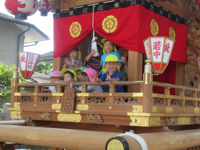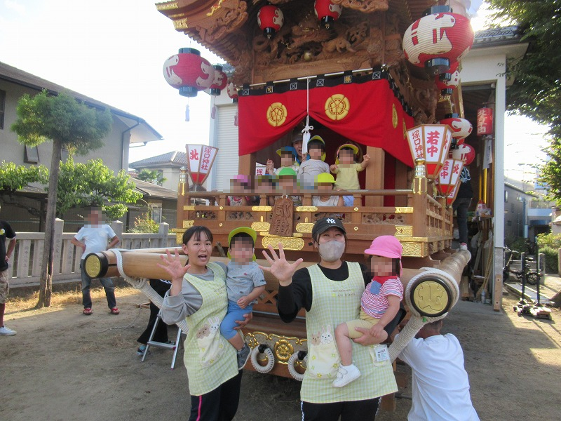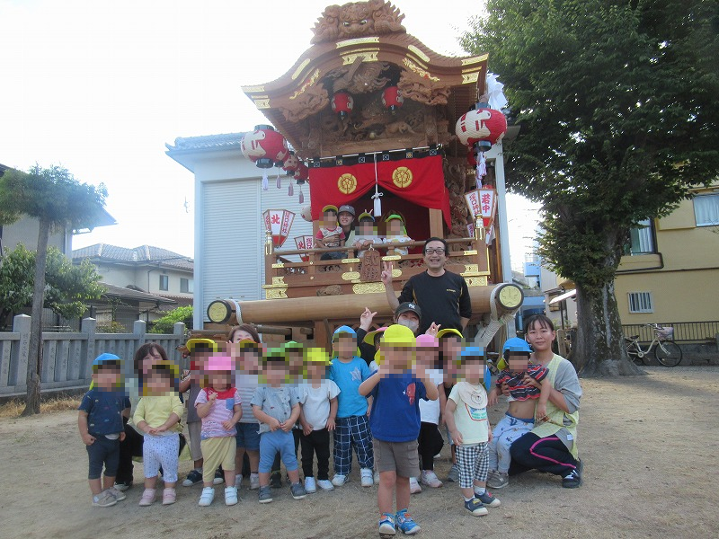 昨日は塚口神社秋祭りでお目見えされる山車の蔵出しにお邪魔しに行きました。はじめて間近で目にする山車に「うわ〜おおきい!」「きゃははは〜」「○△×◇□※〜!」興奮気味の子ども達(笑)