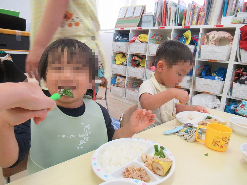 この日の給食に追加されたピーマン。いつもはピーマンが苦手な子もパクパク食べているんですよ(笑)。自分たちで種取りしたピーマン、「おいしい〜」ですって(^o^)