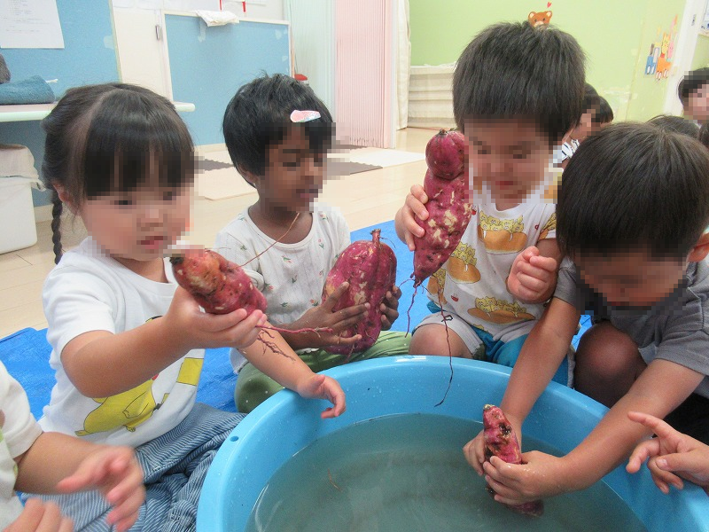 園に帰って芋洗い〜♪ちゃぷちゃぷごしごし〜♪