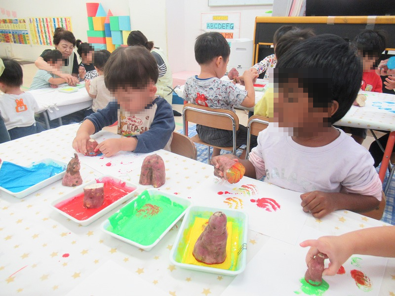 ウェリナ保育園のブログ 今週の工作は芋版画