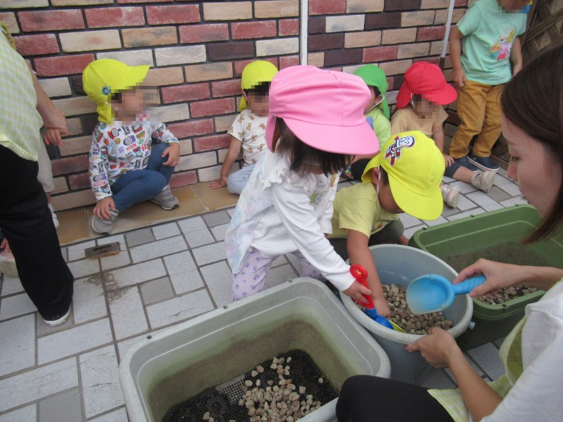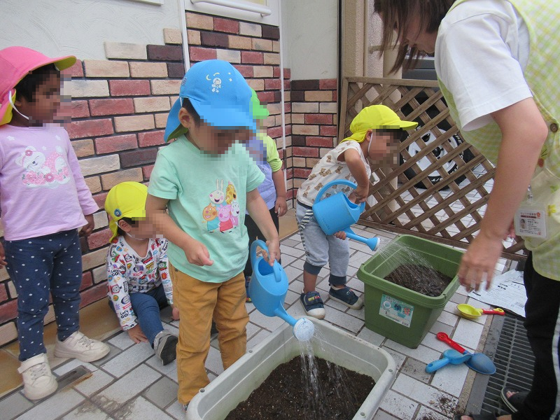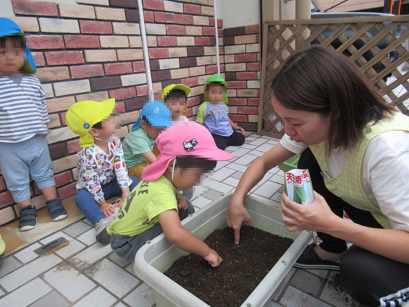 今週はカブの種まきをしました土に水はけ石・肥料をまぜて〜土をならして指で穴をあけて種を3〜5粒づつ〜お水をあげて完了です♪