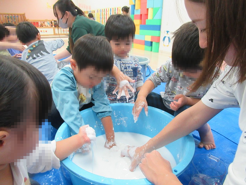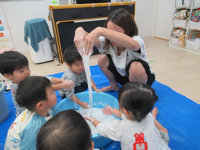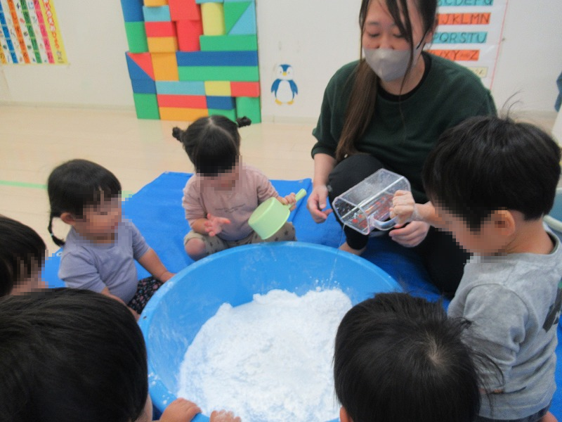 ウェリナ保育園のブログ 触感体験(片栗粉)