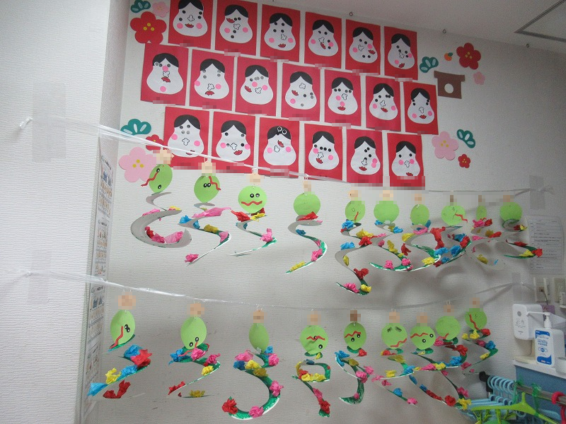 先週と今週の工作の時間は来年の干支「巳」と福笑いを作りました。紙皿を色づけして飾り付けして渦巻き状に切っていけば素敵な「巳かざり」の出来上がり(^-^)福笑いは個性豊かな作品がいっぱい!