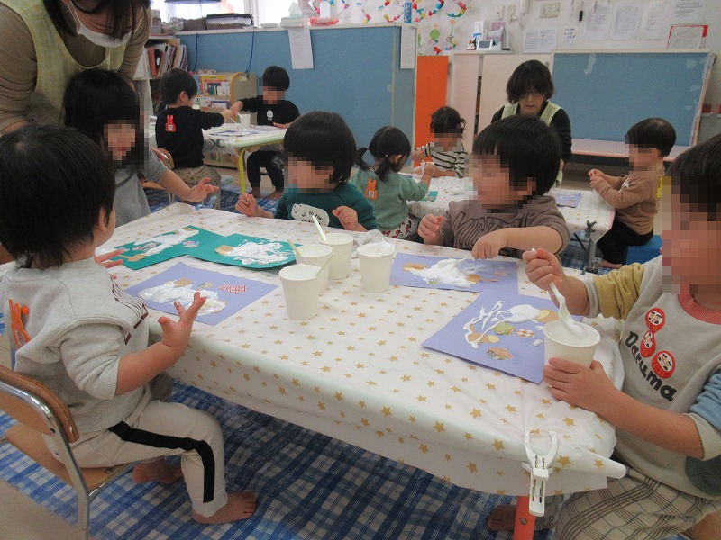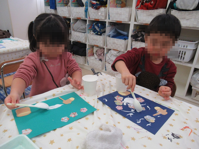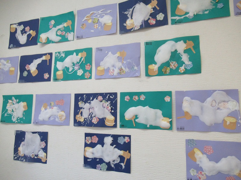 1月15日は小正月。小正月の飾り(餅花)や(繭玉)を想定しての餅花工作をしました。シェービングクリームと洗濯糊を混ぜて作った泡をお餅に見立てて、キレイな餅花を咲かせます(^-^)。