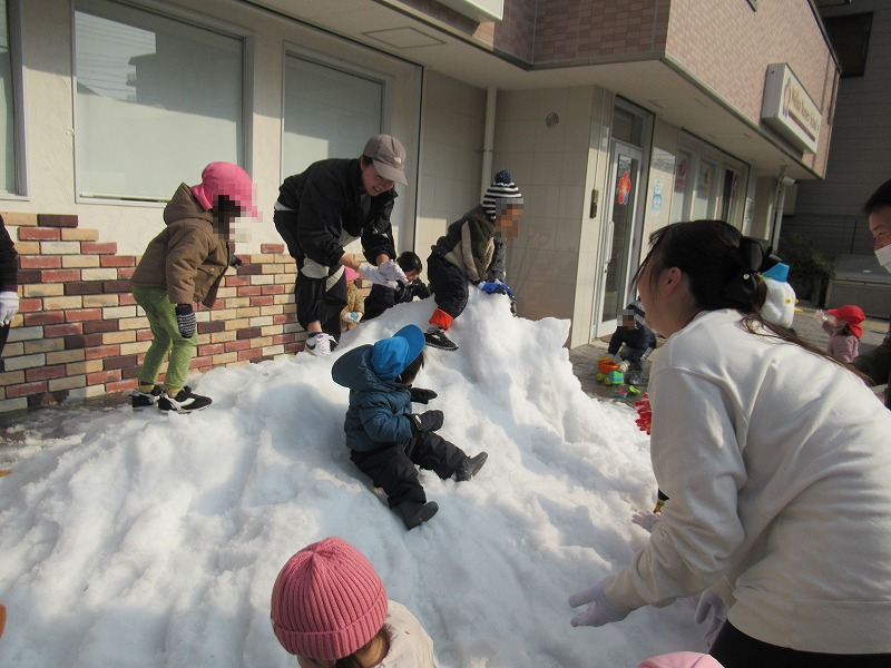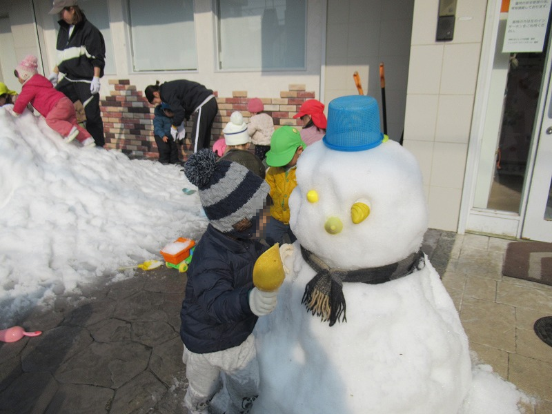 雪山をよじ登ったり、滑り降りたり、雪合戦をしたり、雪遊びをしたり、もちろん雪だるまも(^-^)。