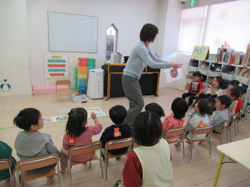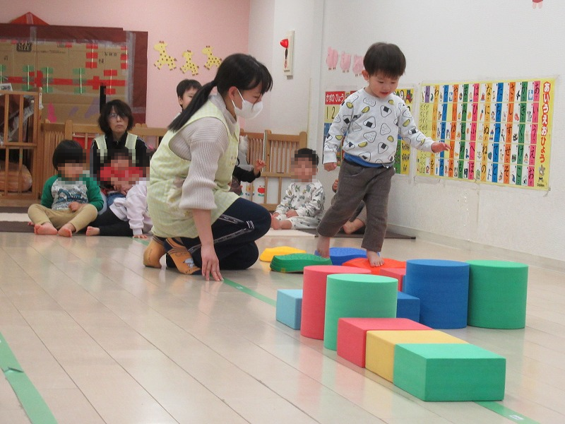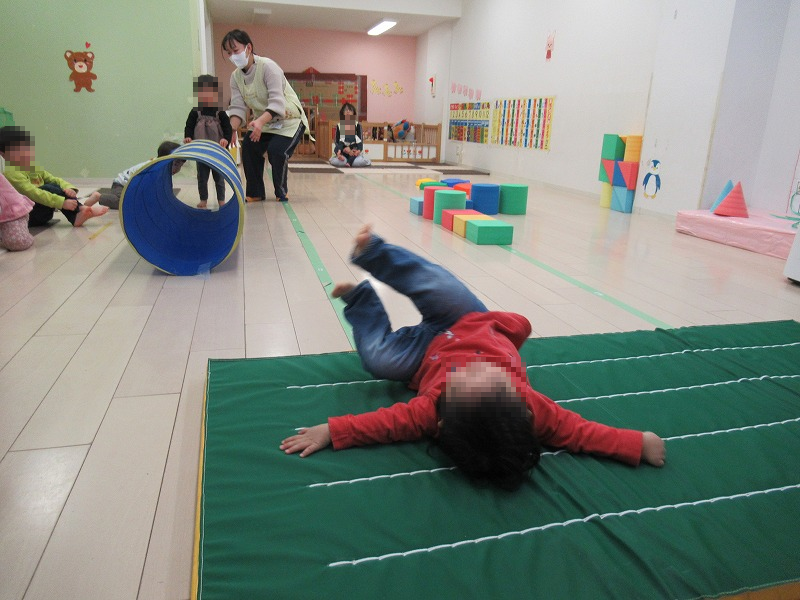今週もたくさん遊んで経験しました。上の写真はECC幼児英会話教室、下の写真は室内運動遊び。