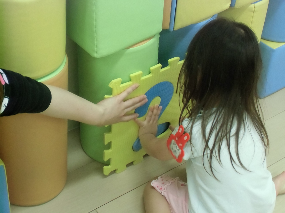 右下写真は数字遊び。この日は数字のはめ込みをしました(^-^)。さすがぁ、上手にできました。