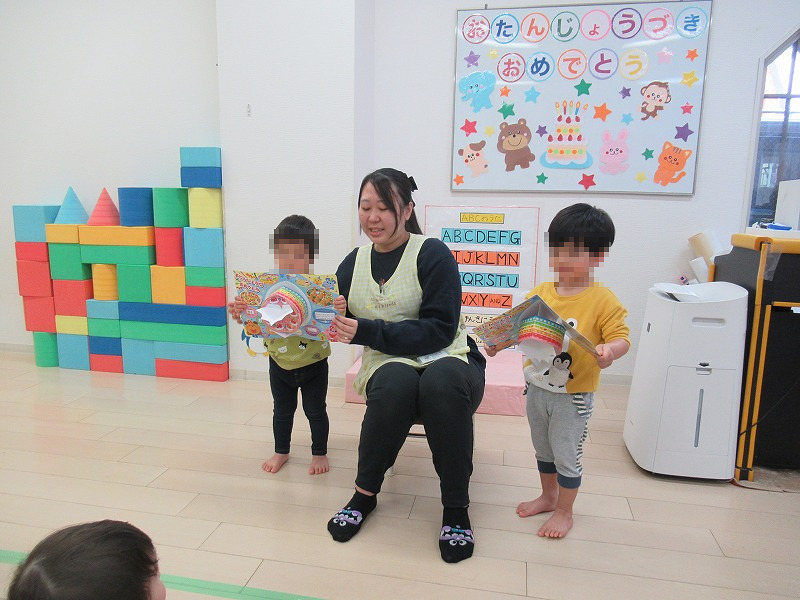先生からバースデーカードをもらったら、みんなでお歌のプレゼント♪