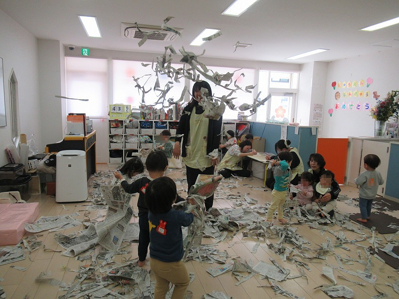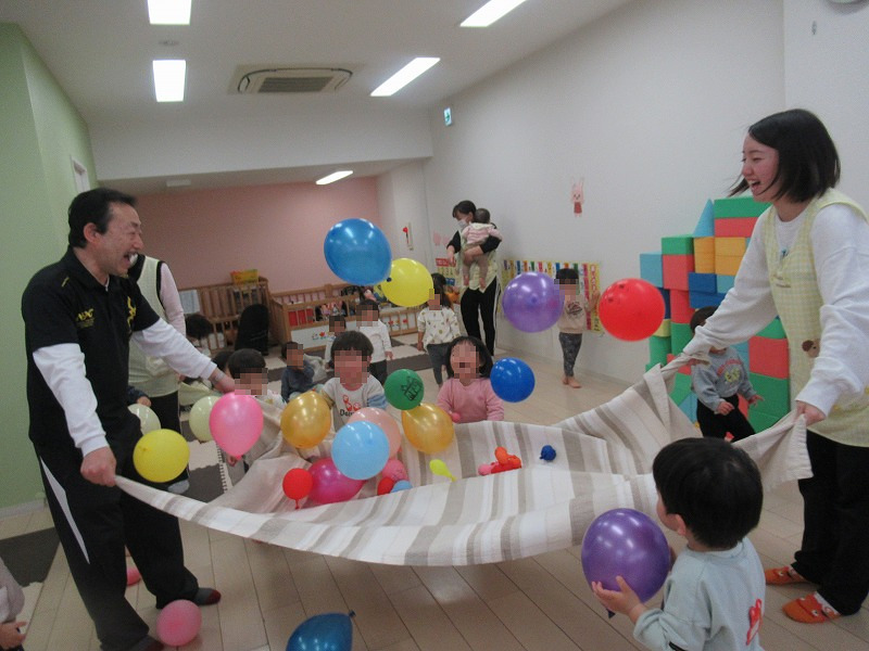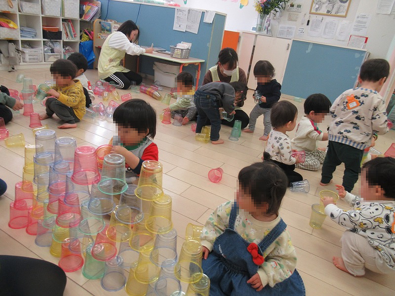 1日目はコップブロック、2日目は風船大布遊び、3日目は散らかし遊び。