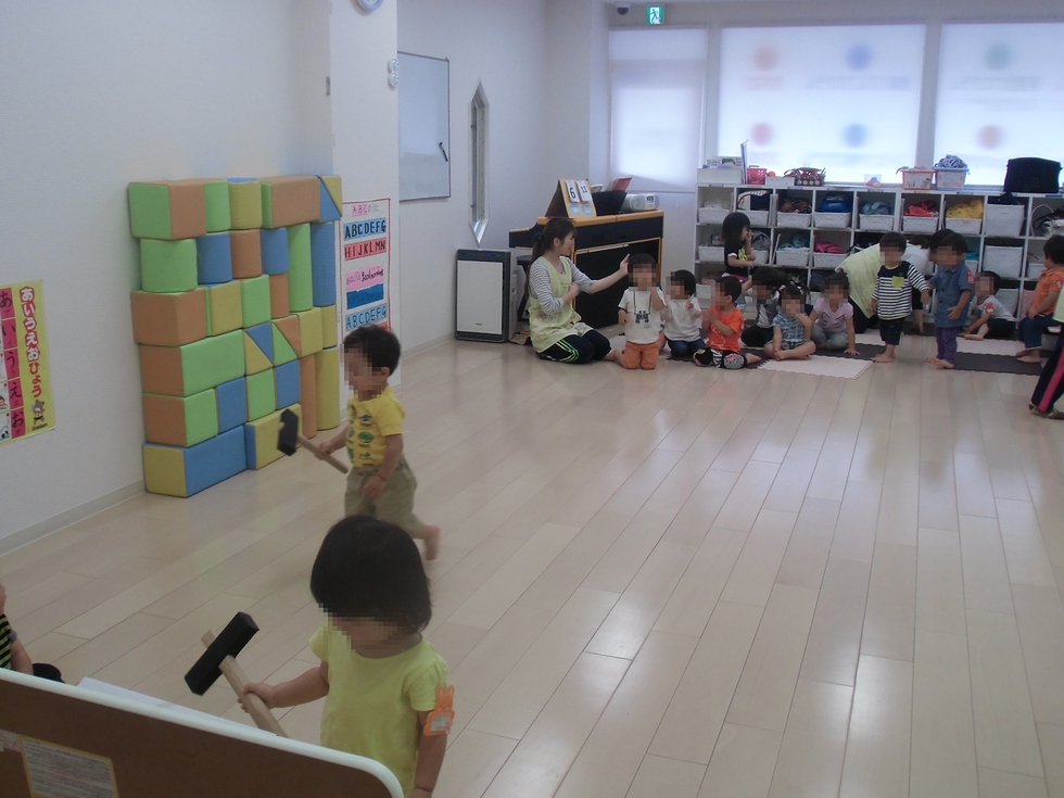 戸外遊びも大切な設定保育のひとつです。でも雨が降ったら行けないもんね〜室内運動に変更です(^-^)。