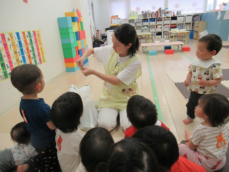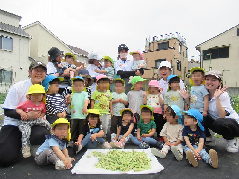 ウェリナ保育園のブログ えんどう豆の収穫(食育)その2