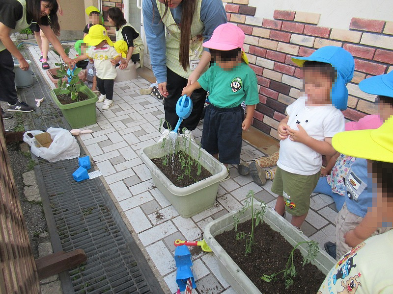 ウェリナ保育園のブログ トマトとナスの苗植え