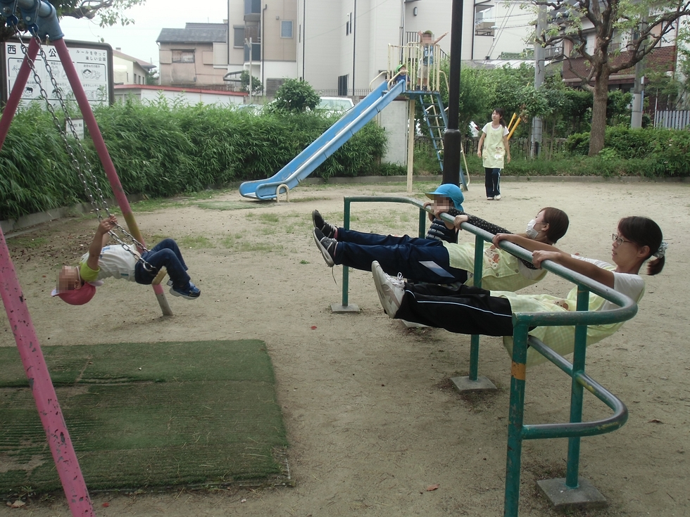 こっそりと撮った右下写真。何をしているのか、園長にもよくわかりませんが、、と、とにかく子天使ちゃんは嬉しそうでした(笑)。