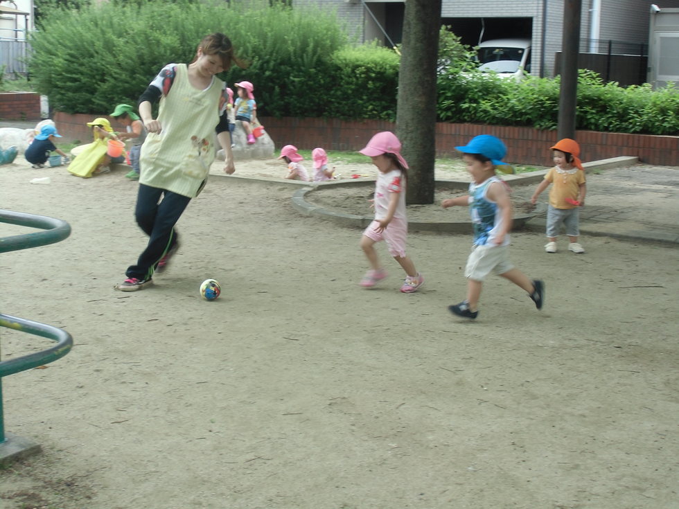 左下写真はM先生とサッカーをしている2才児子天使ちゃん、M先生は元サッカー部だったとか違うとか(^-^)。