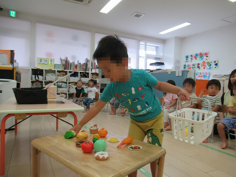 サイコロを振って出た数だけの野菜や果物を集めてかばさんのお口へ(^-^)