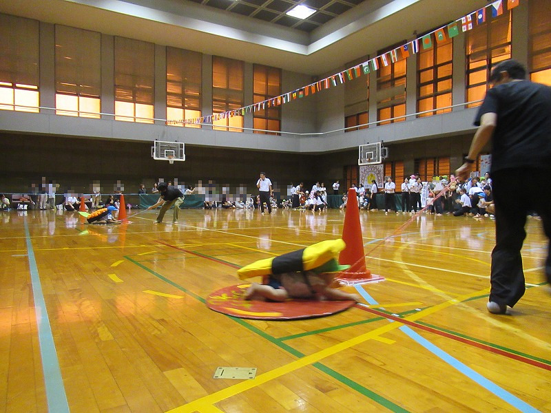 「綱引き」!「板渡り競争」!と親子で協力して「お寿司競争」!