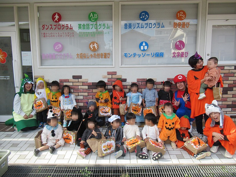 この日の英会話レッスンで「Trick or Treat(トリックオアトリート)」を覚えた子ども達(^-^)