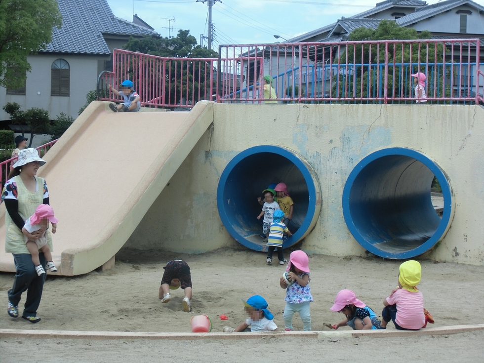 左下写真は公園遊び。元気に遊ぶ子天使ちゃん達、走ったり、滑ったり、ボールを投げたり、転んだり(笑)。