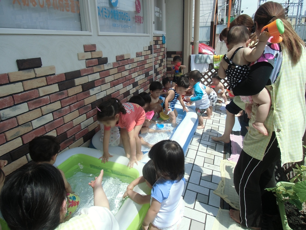 今週から園ビニールプール遊びが始まりました(^-^)。